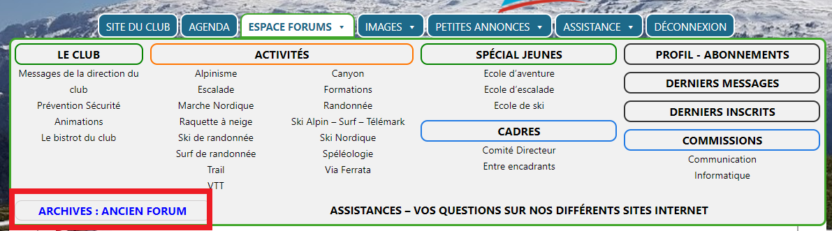 - L’ancien forum est visible à l’adresse https://clubalpinpau.fr/archives/